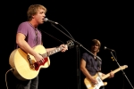 Tomáš Klus se svým parťákem Jirkou Kučerovským obrážejí česká města v rámci turné k nové desce Racek. Tentokrát zavítali do divadla v Českých Budějovicích. Foto Petr Tibi.