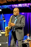 Maceo Parker odehrál v plzeňské Měšťanské besedě jediný letošní koncert v České republice. Legendární saxofonista v minulosti spolupracoval s takovými jmény jako jsou James Brown, George Clinton, Prince nebo Red Hot Chilli Peppers. Koncert, jenž se konal za podpory instituce Plzeň 2015 - Evropské hlavní město kultury, jasně potvrdil, že vzkazky o strhujících funkových orgiích nejsou v Parkerově případě jen prázdná slova. Foto: Petra Liehne