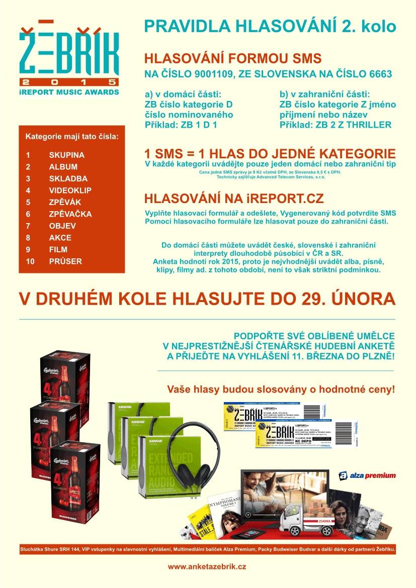 Hudební ceny Žebřík: hlasování Vítězové již 26. ročníku tradiční hudební ankety Žebřík budou vyhlášeni na finálovém večeru...